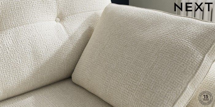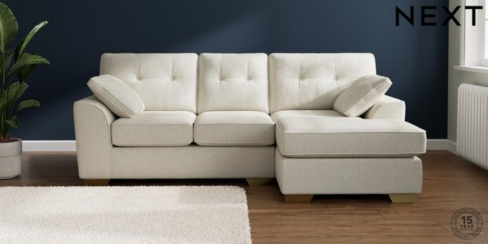 7.2.10 Stamford Buttoned Back Small Sofa Chaise - Right Hand Chunky Texture Oyster Large Square Angle - Brushed Brass | Made Click here to use our website with more accessibility support, for example screen readers