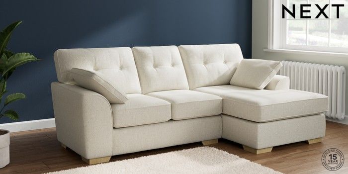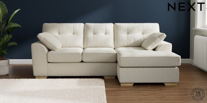 7.2.10 Stamford Buttoned Back Small Sofa Chaise - Right Hand Chunky Texture Oyster Large Square Angle - Light | Made Click here to use our website with more accessibility support, for example screen readers