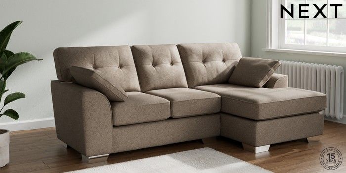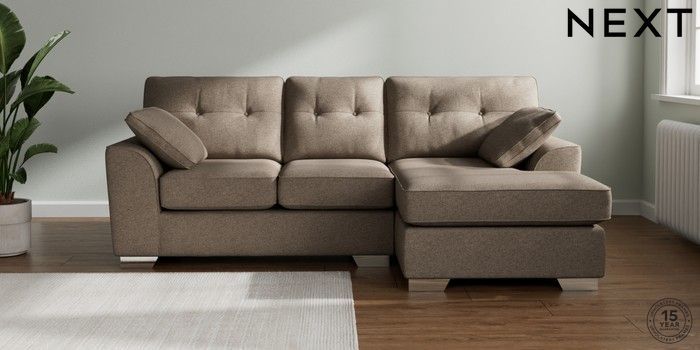 7.2.10 Stamford Buttoned Back Small Sofa Chaise - Right Hand Chunky Weave Dark Natural Large Square Angle - Chrome Metal | Made Click here to use our website with more accessibility support, for example screen readers