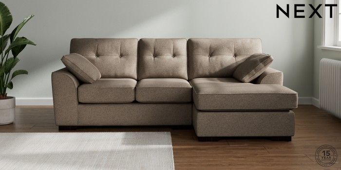 7.2.10 Stamford Buttoned Back Small Sofa Chaise - Right Hand Chunky Weave Dark Natural Large Square Angle - Dark | Made Click here to use our website with more accessibility support, for example screen readers