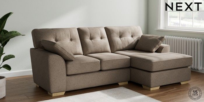 7.2.10 Stamford Buttoned Back Small Sofa Chaise - Right Hand Chunky Weave Dark Natural Large Square Angle - Light | Made Click here to use our website with more accessibility support, for example screen readers
