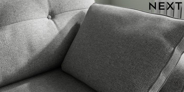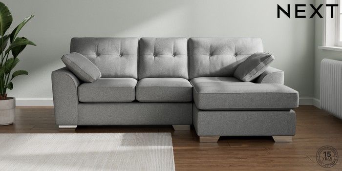 7.2.10 Stamford Buttoned Back Small Sofa Chaise - Right Hand Chunky Weave Mid Grey Large Square Angle - Chrome Metal | Made Click here to use our website with more accessibility support, for example screen readers