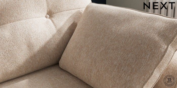 7.2.10 Stamford Buttoned Back Small Sofa Chaise - Right Hand Cotswold Chenille Light Natural Large Square Angle - Brushed Brass | Made Click here to use our website with more accessibility support, for example screen readers