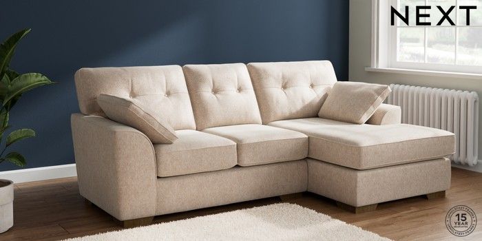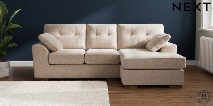 7.2.10 Stamford Buttoned Back Small Sofa Chaise - Right Hand Cotswold Chenille Light Natural Large Square Angle - Mid | Made Click here to use our website with more accessibility support, for example screen readers