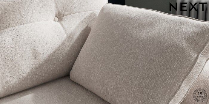 7.2.10 Stamford Buttoned Back Small Sofa Chaise - Right Hand Cotswold Chenille Oyster Large Square Angle - Brushed Brass | Made Click here to use our website with more accessibility support, for example screen readers