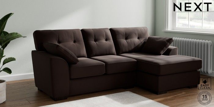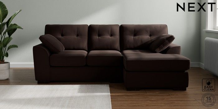 7.2.10 Stamford Buttoned Back Small Sofa Chaise - Right Hand Fine Chenille Easy Clean Chocolate Brown Large Square Angle - Dark | Made Click here to use our website with more accessibility support, for example screen readers