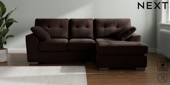 7.2.10 Stamford Buttoned Back Small Sofa Chaise - Right Hand Fine Chenille Easy Clean Chocolate Brown Large Square Angle - Gunmetal | Made Click here to use our website with more accessibility support, for example screen readers