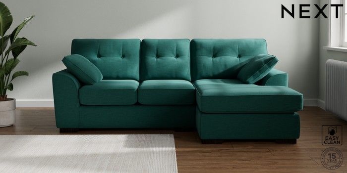7.2.10 Stamford Buttoned Back Small Sofa Chaise - Right Hand Fine Chenille Easy Clean Dark Juniper Green Large Square Angle - Dark | Made Click here to use our website with more accessibility support, for example screen readers