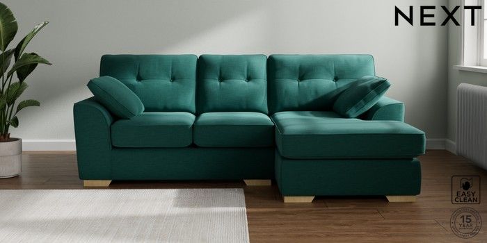 7.2.10 Stamford Buttoned Back Small Sofa Chaise - Right Hand Fine Chenille Easy Clean Dark Juniper Green Large Square Angle - Light | Made Click here to use our website with more accessibility support, for example screen readers