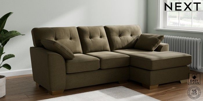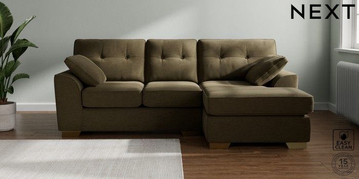 7.2.10 Stamford Buttoned Back Small Sofa Chaise - Right Hand Fine Chenille Easy Clean Dark Moss Green Large Square Angle - Brushed Brass | Made Click here to use our website with more accessibility support, for example screen readers