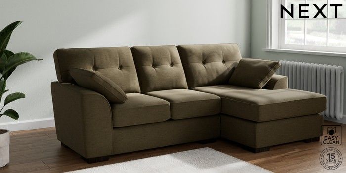 7.2.10 Stamford Buttoned Back Small Sofa Chaise - Right Hand Fine Chenille Easy Clean Dark Moss Green Large Square Angle - Dark | Made Click here to use our website with more accessibility support, for example screen readers