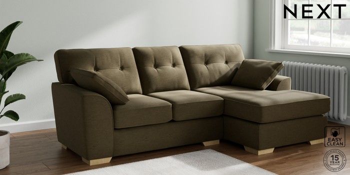 7.2.10 Stamford Buttoned Back Small Sofa Chaise - Right Hand Fine Chenille Easy Clean Dark Moss Green Large Square Angle - Light | Made Click here to use our website with more accessibility support, for example screen readers