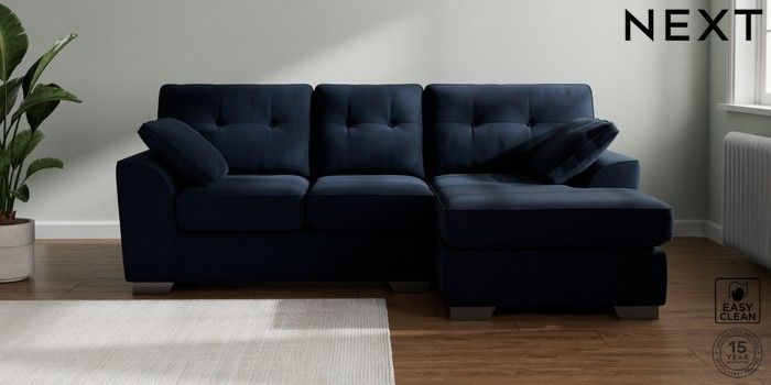 7.2.10 Stamford Buttoned Back Small Sofa Chaise - Right Hand Fine Chenille Easy Clean Dark Navy Blue Large Square Angle - Gunmetal | Made Click here to use our website with more accessibility support, for example screen readers
