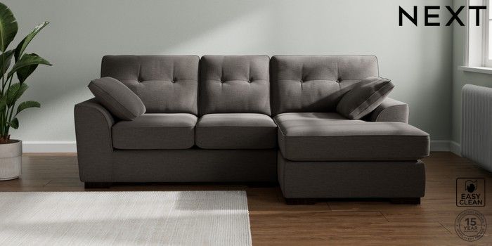 7.2.10 Stamford Buttoned Back Small Sofa Chaise - Right Hand Fine Chenille Easy Clean Dark Smoke Grey Large Square Angle - Dark | Made Click here to use our website with more accessibility support, for example screen readers