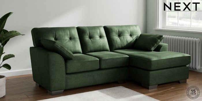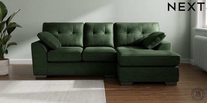 7.2.10 Stamford Buttoned Back Small Sofa Chaise - Right Hand Luxe Chenille Dark Green Large Square Angle - Gunmetal | Made Click here to use our website with more accessibility support, for example screen readers