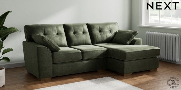 7.2.10 Stamford Buttoned Back Small Sofa Chaise - Right Hand Luxe Chenille Mid Green Large Square Angle - Mid | Made Click here to use our website with more accessibility support, for example screen readers