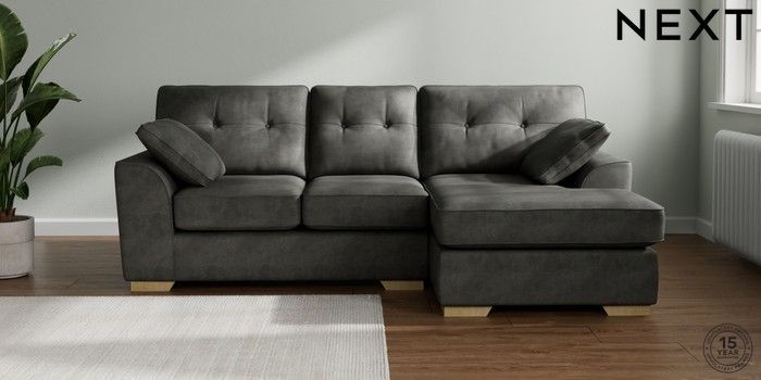 7.2.10 Stamford Buttoned Back Small Sofa Chaise - Right Hand Monza Faux Leather Easy Clean Dark Grey Large Square Angle - Light | Made Click here to use our website with more accessibility support, for example screen readers