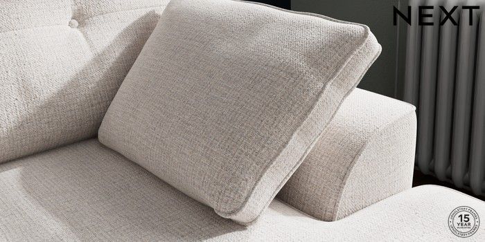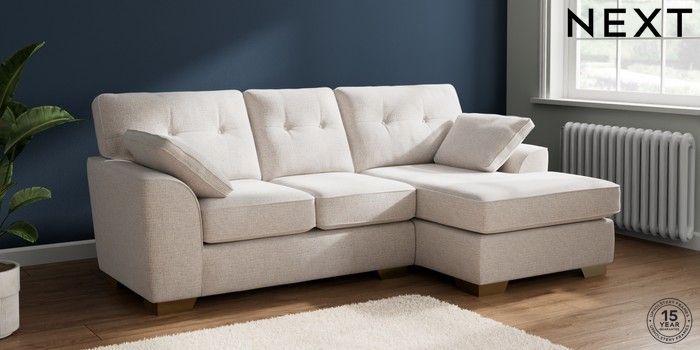 7.2.10 Stamford Buttoned Back Small Sofa Chaise - Right Hand Multi Weave Oyster Large Square Angle - Brushed Brass | Made Click here to use our website with more accessibility support, for example screen readers