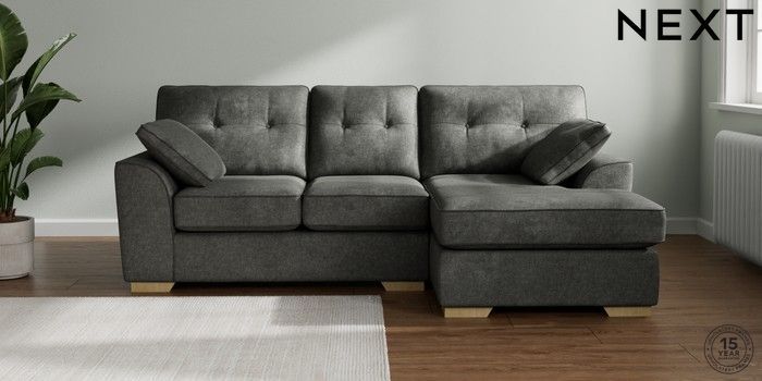 7.2.10 Stamford Buttoned Back Small Sofa Chaise - Right Hand Plush Chenille Dark Grey Large Square Angle - Light | Made Click here to use our website with more accessibility support, for example screen readers
