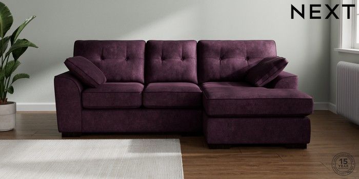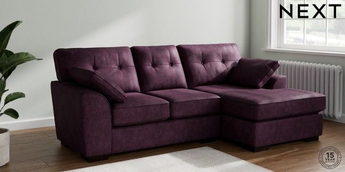 7.2.10 Stamford Buttoned Back Small Sofa Chaise - Right Hand Plush Chenille Dark Plum Purple Large Square Angle - Dark | Made Click here to use our website with more accessibility support, for example screen readers