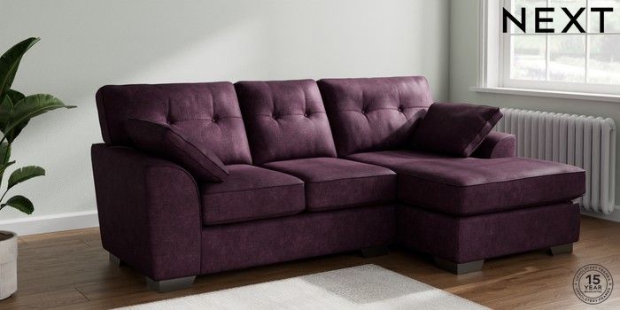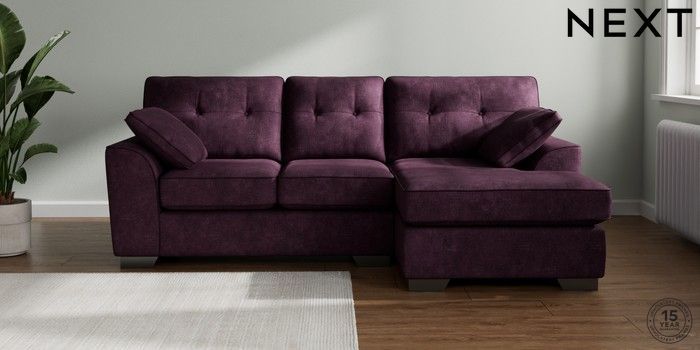 7.2.10 Stamford Buttoned Back Small Sofa Chaise - Right Hand Plush Chenille Dark Plum Purple Large Square Angle - Gunmetal | Made Click here to use our website with more accessibility support, for example screen readers