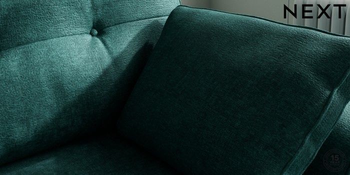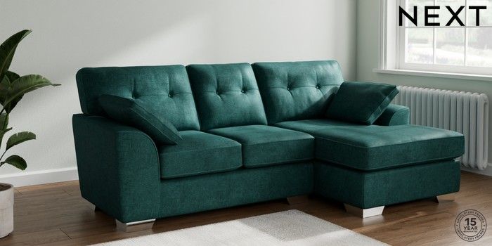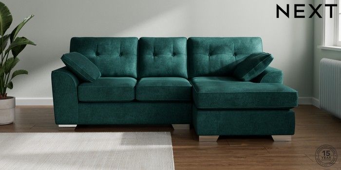 7.2.10 Stamford Buttoned Back Small Sofa Chaise - Right Hand Plush Chenille Dark Teal Green Large Square Angle - Chrome Metal | Made Click here to use our website with more accessibility support, for example screen readers