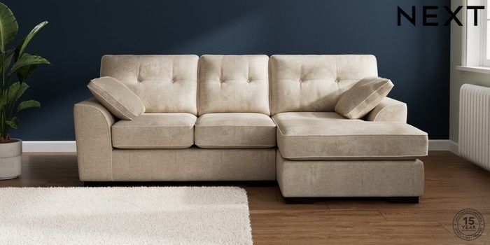 7.2.10 Stamford Buttoned Back Small Sofa Chaise - Right Hand Plush Chenille Light Natural Large Square Angle - Dark | Made Click here to use our website with more accessibility support, for example screen readers