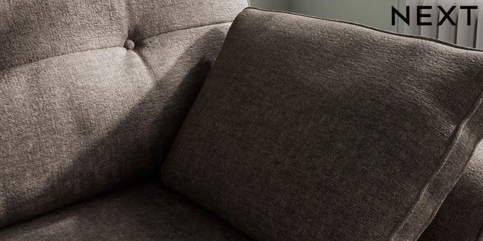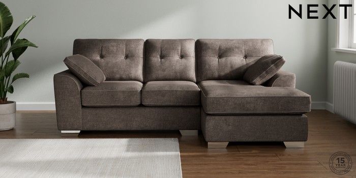 7.2.10 Stamford Buttoned Back Small Sofa Chaise - Right Hand Plush Chenille Mink Brown Large Square Angle - Chrome Metal | Made Click here to use our website with more accessibility support, for example screen readers