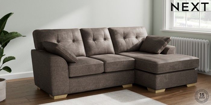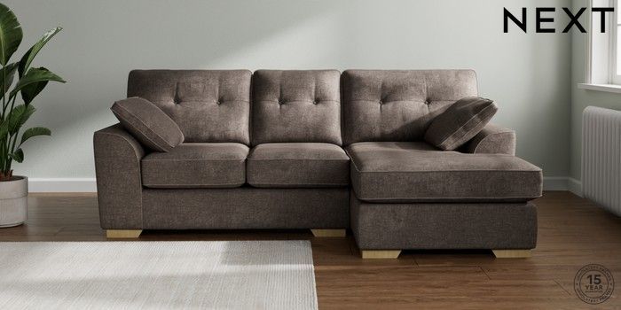 7.2.10 Stamford Buttoned Back Small Sofa Chaise - Right Hand Plush Chenille Mink Brown Large Square Angle - Light | Made Click here to use our website with more accessibility support, for example screen readers