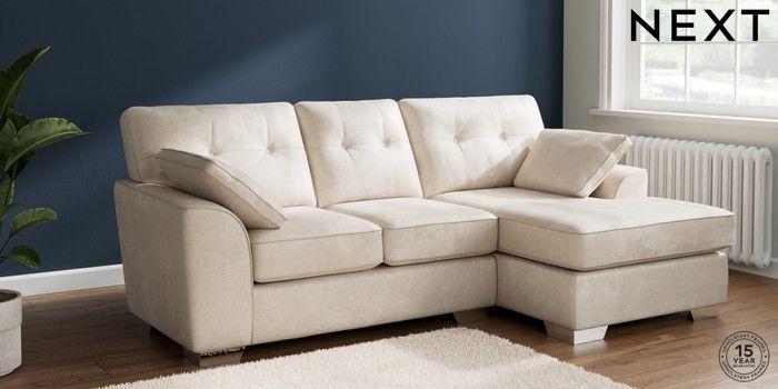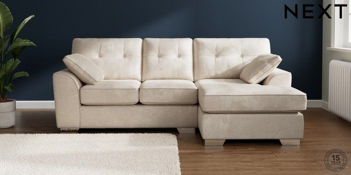 7.2.10 Stamford Buttoned Back Small Sofa Chaise - Right Hand Plush Chenille Oyster Large Square Angle - Chrome Metal | Made Click here to use our website with more accessibility support, for example screen readers
