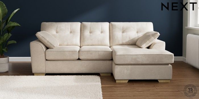 7.2.10 Stamford Buttoned Back Small Sofa Chaise - Right Hand Plush Chenille Oyster Large Square Angle - Light | Made Click here to use our website with more accessibility support, for example screen readers
