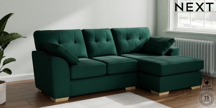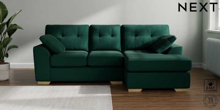 7.2.10 Stamford Buttoned Back Small Sofa Chaise - Right Hand Plush Velvet Easy Clean Bottle Green Large Square Angle - Light | Made Click here to use our website with more accessibility support, for example screen readers