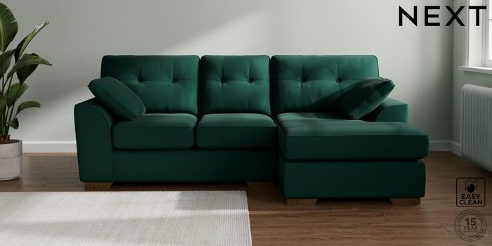 7.2.10 Stamford Buttoned Back Small Sofa Chaise - Right Hand Plush Velvet Easy Clean Bottle Green Large Square Angle - Mid | Made Click here to use our website with more accessibility support, for example screen readers
