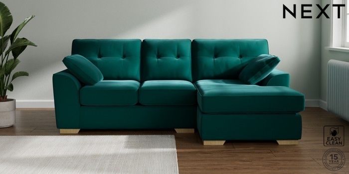 7.2.10 Stamford Buttoned Back Small Sofa Chaise - Right Hand Plush Velvet Easy Clean Juniper Green Large Square Angle - Light | Made Click here to use our website with more accessibility support, for example screen readers