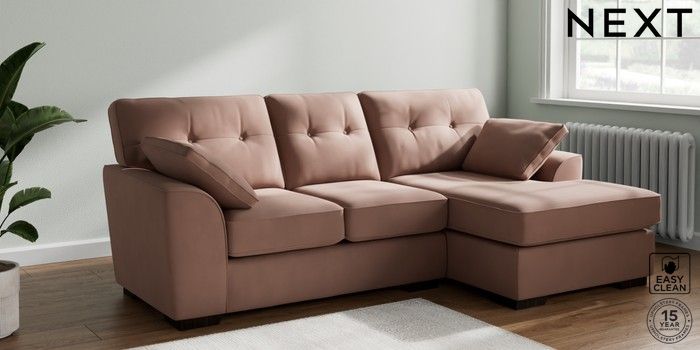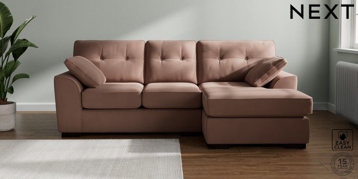 7.2.10 Stamford Buttoned Back Small Sofa Chaise - Right Hand Plush Velvet Easy Clean Mid Natural Large Square Angle - Dark | Made Click here to use our website with more accessibility support, for example screen readers