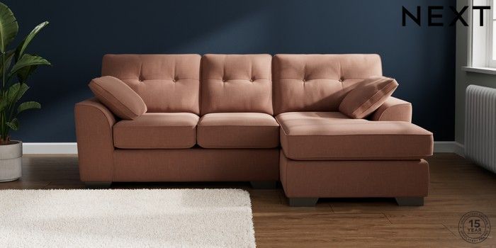 7.2.10 Stamford Buttoned Back Small Sofa Chaise - Right Hand Relaxed Linen Look Light Rust Brown Large Square Angle - Gunmetal | Made Click here to use our website with more accessibility support, for example screen readers