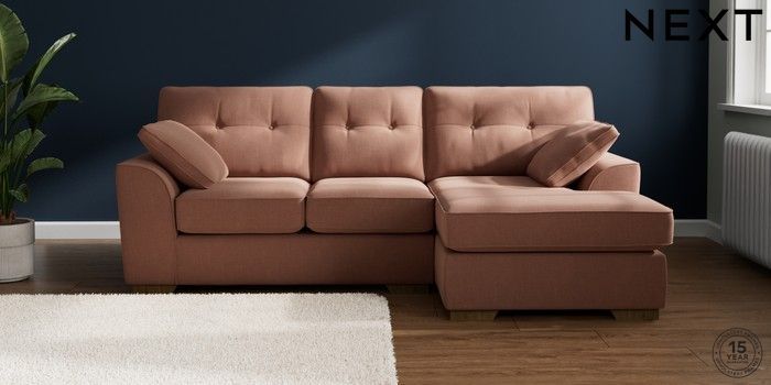 7.2.10 Stamford Buttoned Back Small Sofa Chaise - Right Hand Relaxed Linen Look Light Rust Brown Large Square Angle - Mid | Made Click here to use our website with more accessibility support, for example screen readers