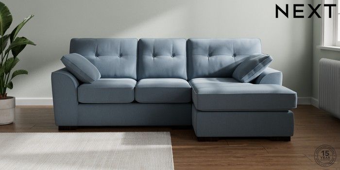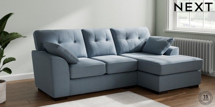 7.2.10 Stamford Buttoned Back Small Sofa Chaise - Right Hand Relaxed Linen Look Mid Blue Large Square Angle - Dark | Made Click here to use our website with more accessibility support, for example screen readers