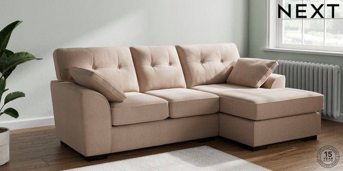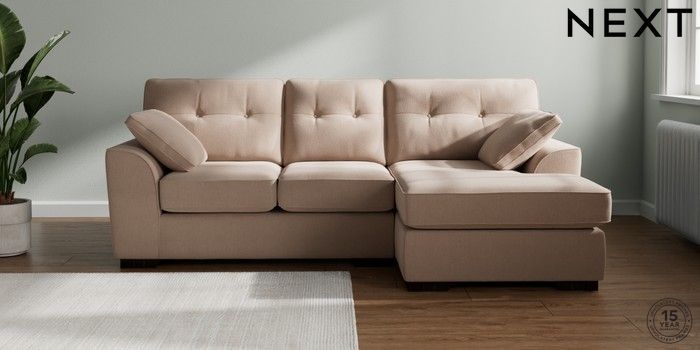 7.2.10 Stamford Buttoned Back Small Sofa Chaise - Right Hand Relaxed Linen Look Mid Natural Large Square Angle - Dark | Made Click here to use our website with more accessibility support, for example screen readers