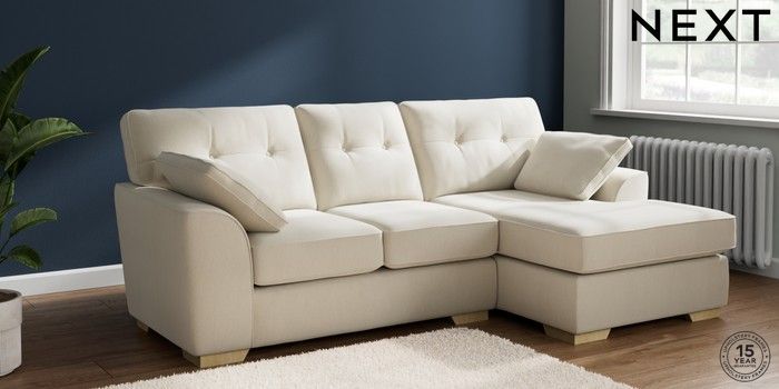 7.2.10 Stamford Buttoned Back Small Sofa Chaise - Right Hand Relaxed Linen Look Oyster Large Square Angle - Light | Made Click here to use our website with more accessibility support, for example screen readers