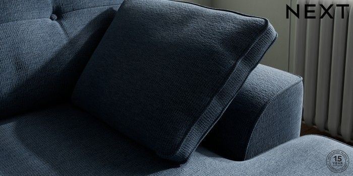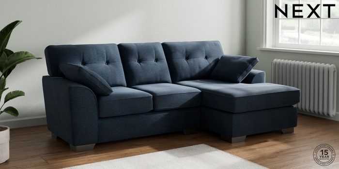 7.2.10 Stamford Buttoned Back Small Sofa Chaise - Right Hand Ripple Chenille Dark Blue Large Square Angle - Gunmetal | Made Click here to use our website with more accessibility support, for example screen readers