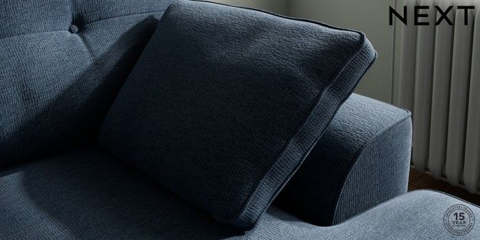 7.2.10 Stamford Buttoned Back Small Sofa Chaise - Right Hand Ripple Chenille Dark Blue Large Square Angle - Mid | Made Click here to use our website with more accessibility support, for example screen readers