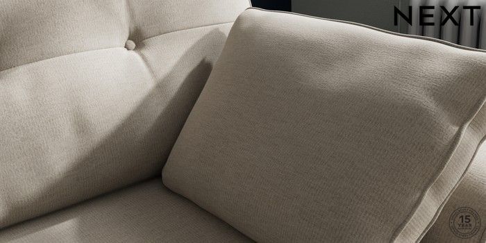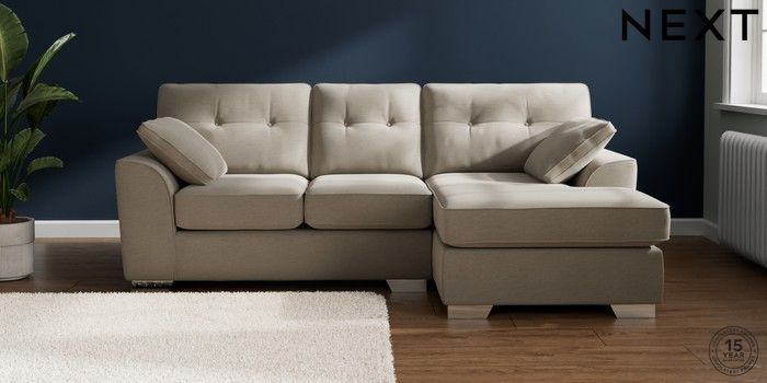 7.2.10 Stamford Buttoned Back Small Sofa Chaise - Right Hand Ripple Chenille Light Natural Large Square Angle - Chrome Metal | Made Click here to use our website with more accessibility support, for example screen readers