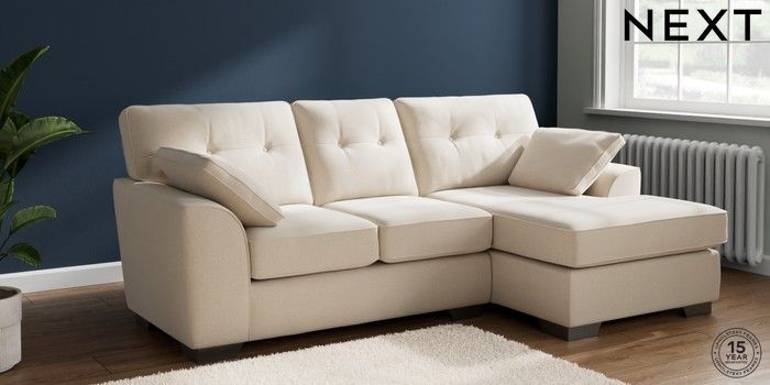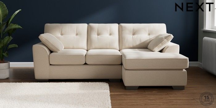 7.2.10 Stamford Buttoned Back Small Sofa Chaise - Right Hand Studio Chenille Oyster Large Square Angle - Gunmetal | Made Click here to use our website with more accessibility support, for example screen readers