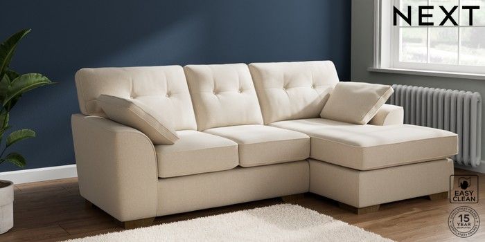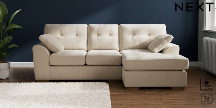 7.2.10 Stamford Buttoned Back Small Sofa Chaise - Right Hand Tweedy Blend Easy Clean Oyster Large Square Angle - Mid | Made Click here to use our website with more accessibility support, for example screen readers