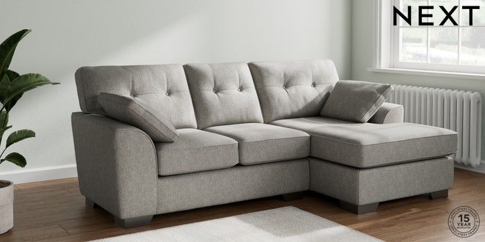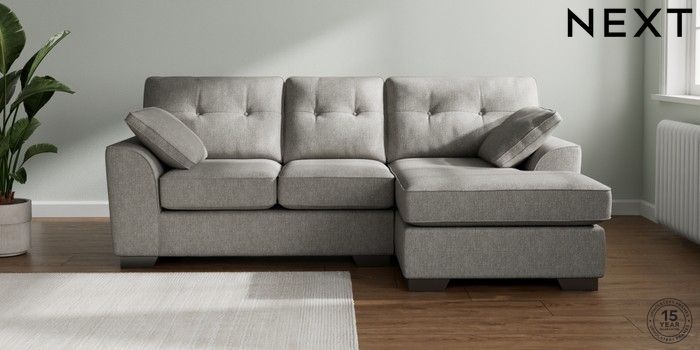 7.2.10 Stamford Buttoned Back Small Sofa Chaise - Right Hand Tweedy Chenille Mid Grey Large Square Angle - Gunmetal | Made Click here to use our website with more accessibility support, for example screen readers