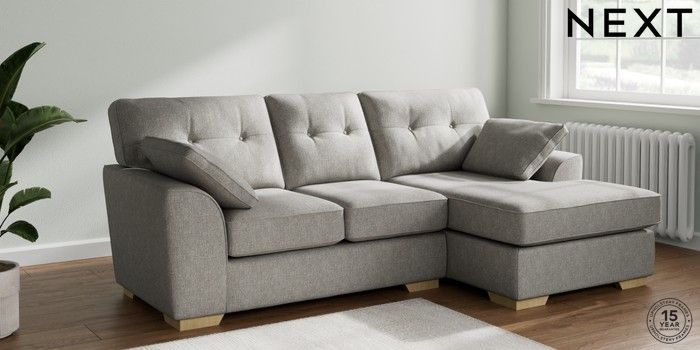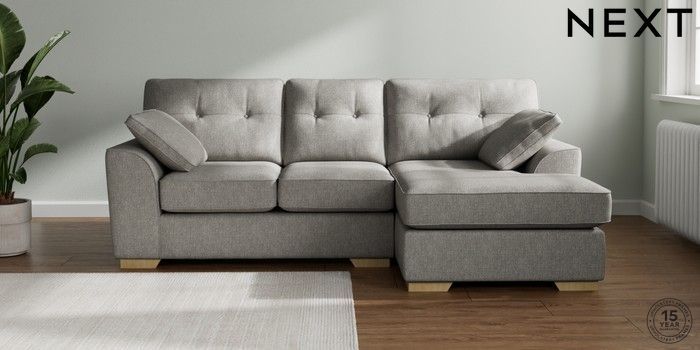 7.2.10 Stamford Buttoned Back Small Sofa Chaise - Right Hand Tweedy Chenille Mid Grey Large Square Angle - Light | Made Click here to use our website with more accessibility support, for example screen readers