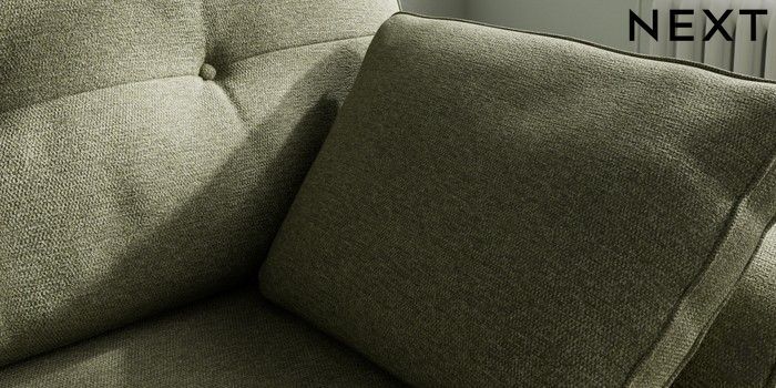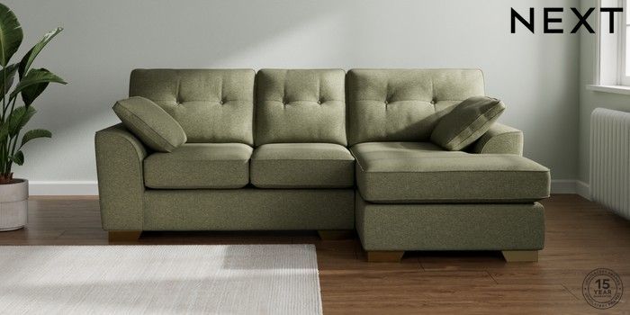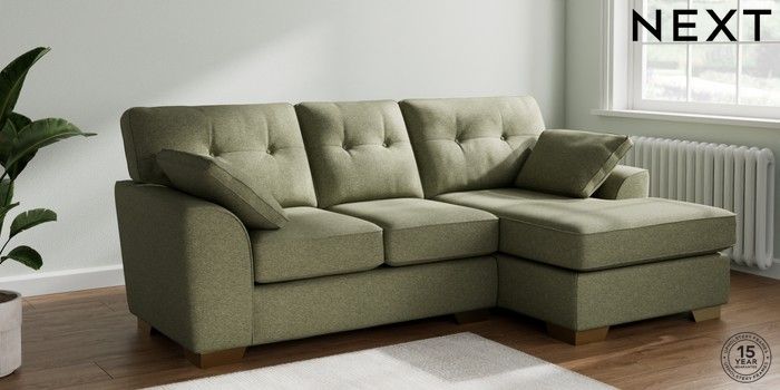 7.2.10 Stamford Buttoned Back Small Sofa Chaise - Right Hand Tweedy Chenille Mid Moss Green Large Square Angle - Brushed Brass | Made Click here to use our website with more accessibility support, for example screen readers