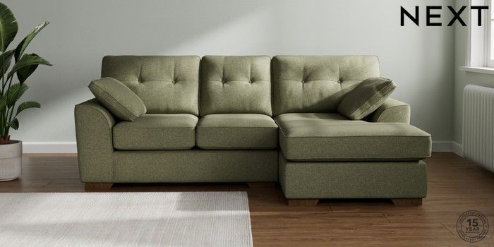 7.2.10 Stamford Buttoned Back Small Sofa Chaise - Right Hand Tweedy Chenille Mid Moss Green Large Square Angle - Mid | Made Click here to use our website with more accessibility support, for example screen readers