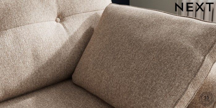7.2.10 Stamford Buttoned Back Small Sofa Chaise - Right Hand Tweedy Chenille Mid Natural Large Square Angle - Chrome Metal | Made Click here to use our website with more accessibility support, for example screen readers